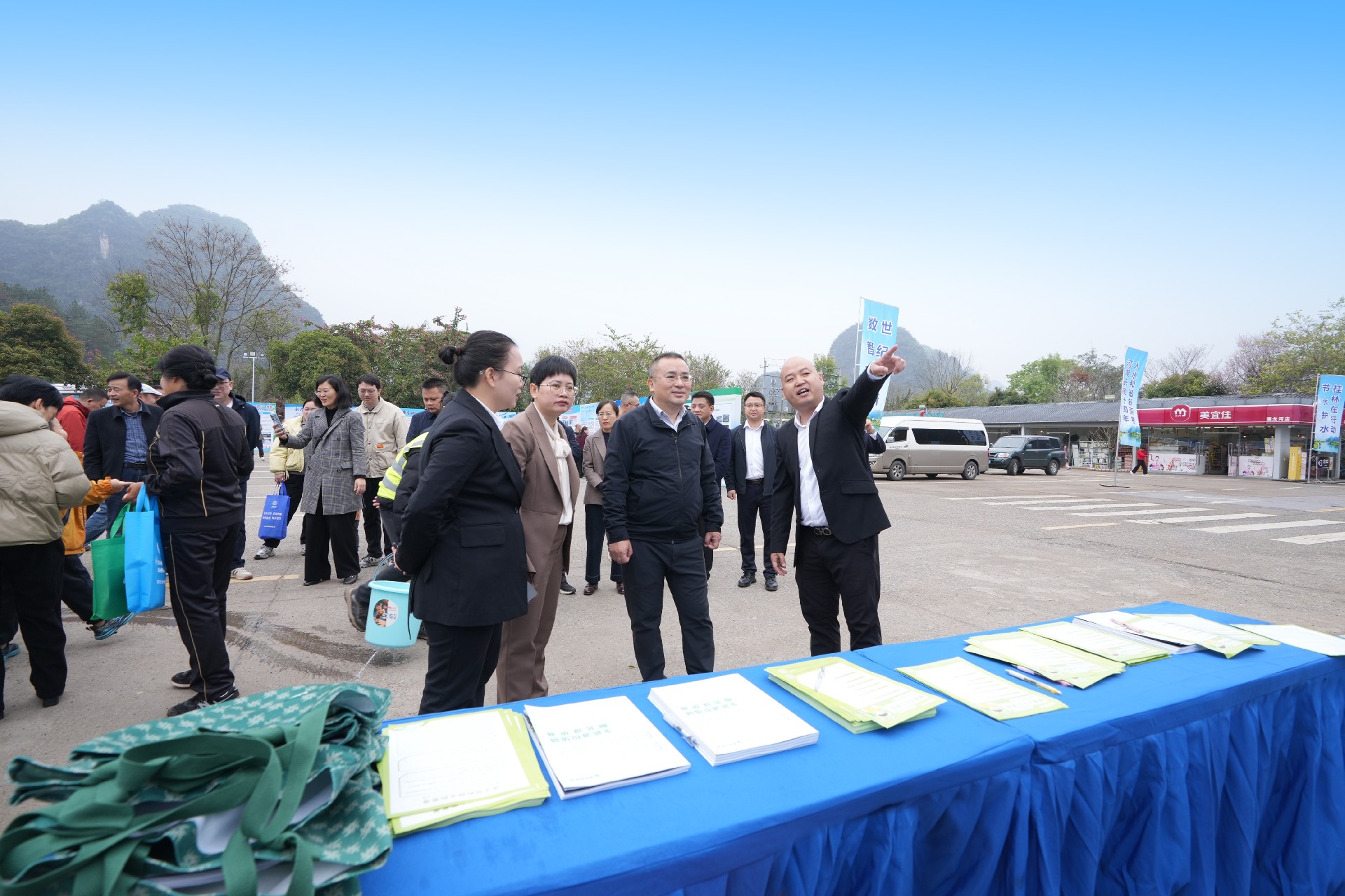 在桂林的活动现场,富能新能源展位前人头攒动。桂林市副市长周彦、市水利局局长王海燕一行来到展位参观指导,对富能新能源在公共机构节水领域的技术实力表示认可,桂林市各用水单位及公共机构代表们积极参与现场互动体验。