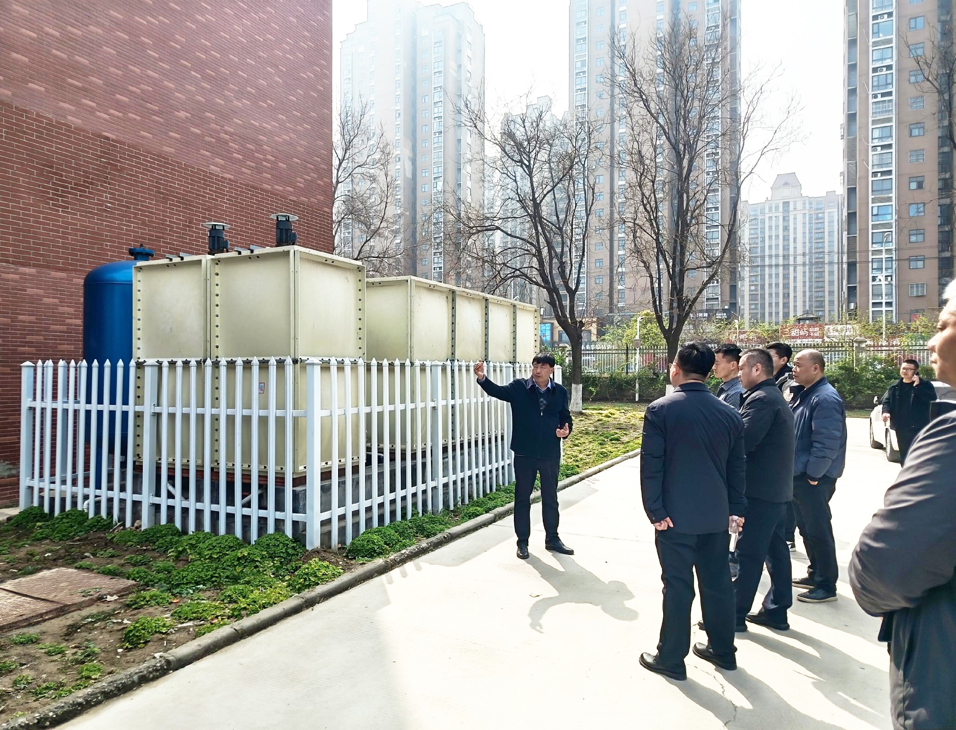 活动期间,与会领导及300余名师生代表实地参观了由富能新能源承建的合同节水能源管控中心、灰水回收再利用系统以及供水管网漏损监测系统。商丘市水利局党组成员、副局长刘杰超及校领导朱韶对富能新能源“技改+管理+意识”三位一体的节水模式给予高度评价。通过智慧化管控平台,学校实现了用水数据的实时监测与精准分析,节水工作从“被动维修”转向“主动预警”,真正做到让每一滴水“有数可查、有据可依”。